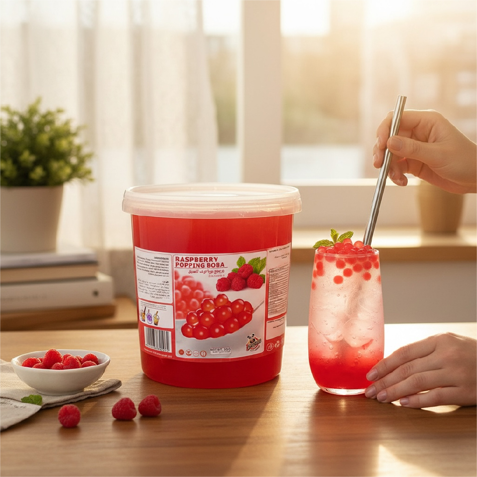 بوبا پاپینگ رزبری، ترکیبی خوشمزه از طعم ترش و شیرین تمشک قرمز را درون خود دارد. این مرواریدهای آبدار با پوستهای لطیف از عصاره جلبک دریایی پوشیده شدهاند و هنگام گاز زدن، طعمی دلپذیر و تازه از تمشک را آزاد میکنند. انتخابی ایدهآل برای افزودن هیجان و طعم میوهای به چایهای میوهای، اسموتیها، کوکتلها، دسرهای یخی و بستنیها.