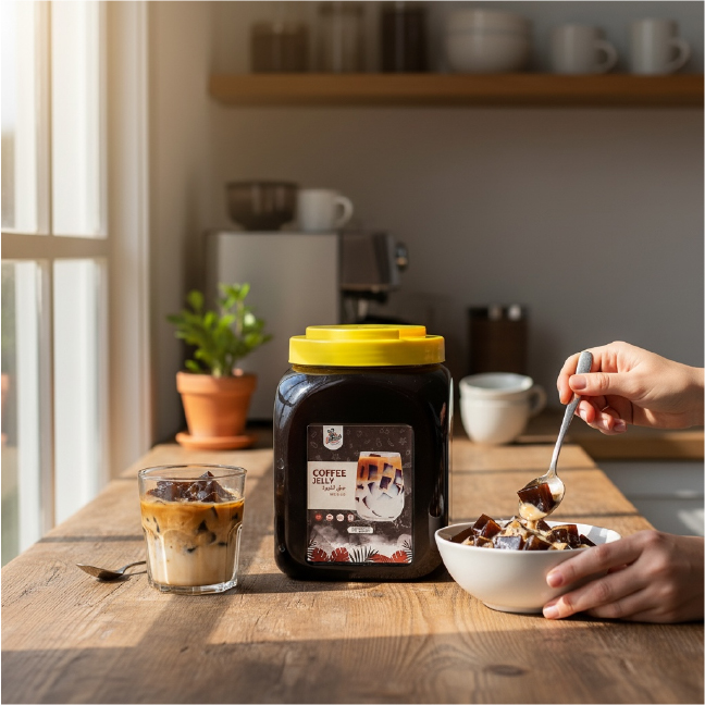 ژله قهوه یک تاپینگ خوشمزه و معطر است که بافتی نرم و جویدنی دارد و طعم غنی قهوه را به نوشیدنیها و دسرهای شما اضافه میکند. این محصول با ترکیبی از عصاره قهوه مرغوب و ژله بونسدار تهیه شده و تجربهای متفاوت و لذتبخش را برای علاقهمندان به طعم قهوه فراهم میکند. ژله قهوه انتخابی عالی برای کسانی است که میخواهند طعم و رایحه قهوه را در بابل تی، میلک تی و دسرهای خود حس کنند.