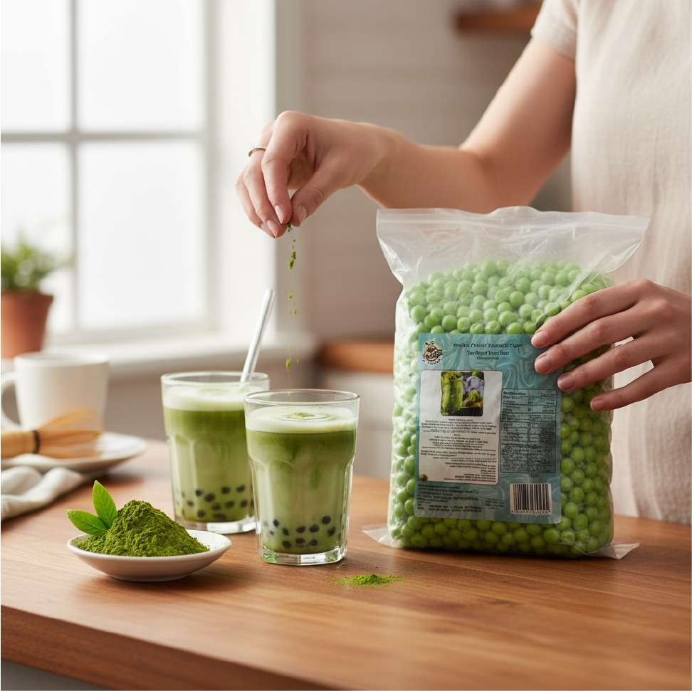بابل تی تاپیوکا ماچا، دانههای کوچک و جویدنی ساختهشده از نشاسته تاپیوکا با طعم و رنگ سبز جذاب ماچا هستند. این محصول علاوه بر افزودن بافتی لطیف و کشسان به نوشیدنیها، طعمی دلپذیر و کمی خاکی از ماچا را نیز ارائه میدهد که تجربهای خاص و متفاوت برای علاقهمندان به بابل تی، میلک تی و اسموتیها ایجاد میکند.