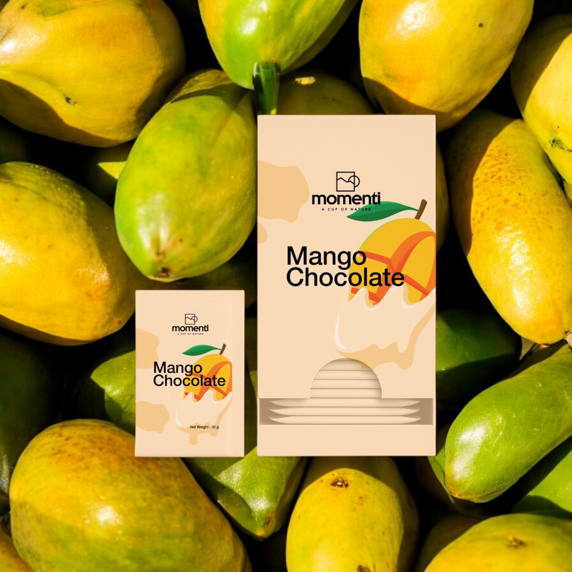 پودر هات چاکلت مانگو چاکلت مومنتی ترکیبی بینظیر از شکلات سفید و طعمی شیرین و استوایی از انبه است. این نوشیدنی فوری، انتخابی ایدهآل برای زمانی است که به دنبال طعمی متمایز و خوشعطر هستید